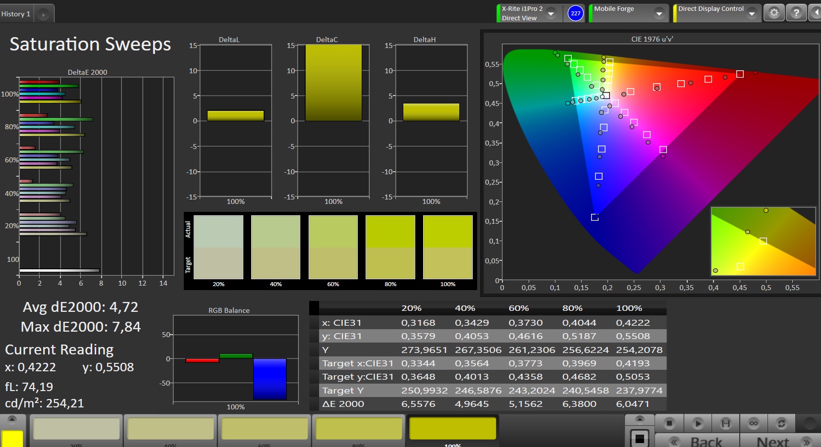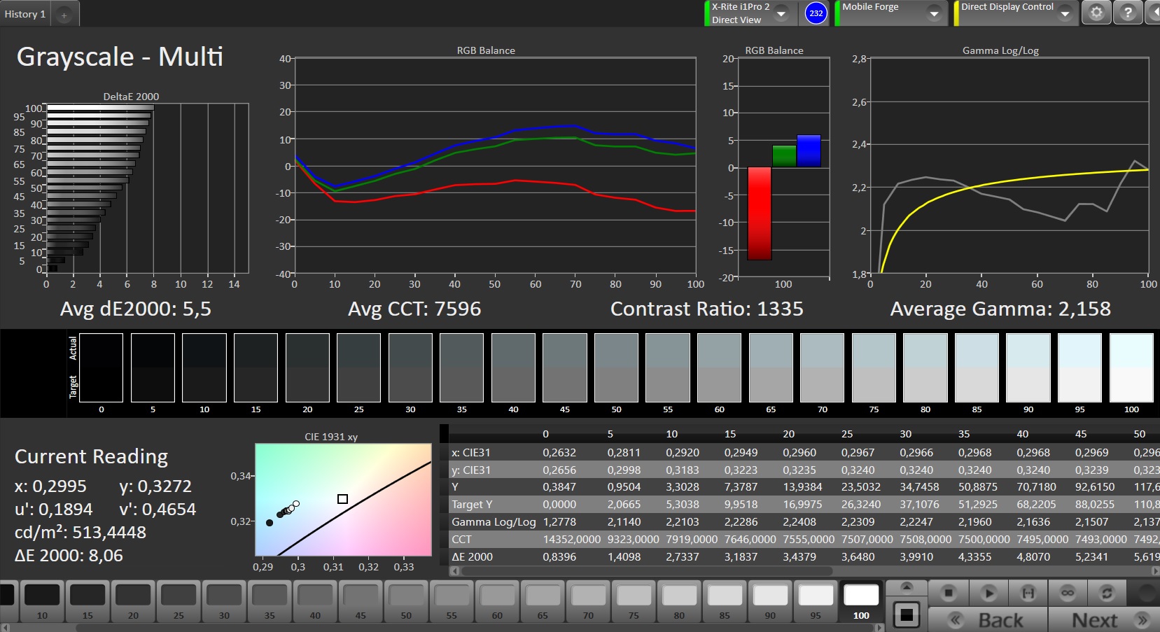 | Greyscale dE 2000 * | 5.5 | 2.6 53% | 2.5 55% | 1.6 71% | 2 64% |
