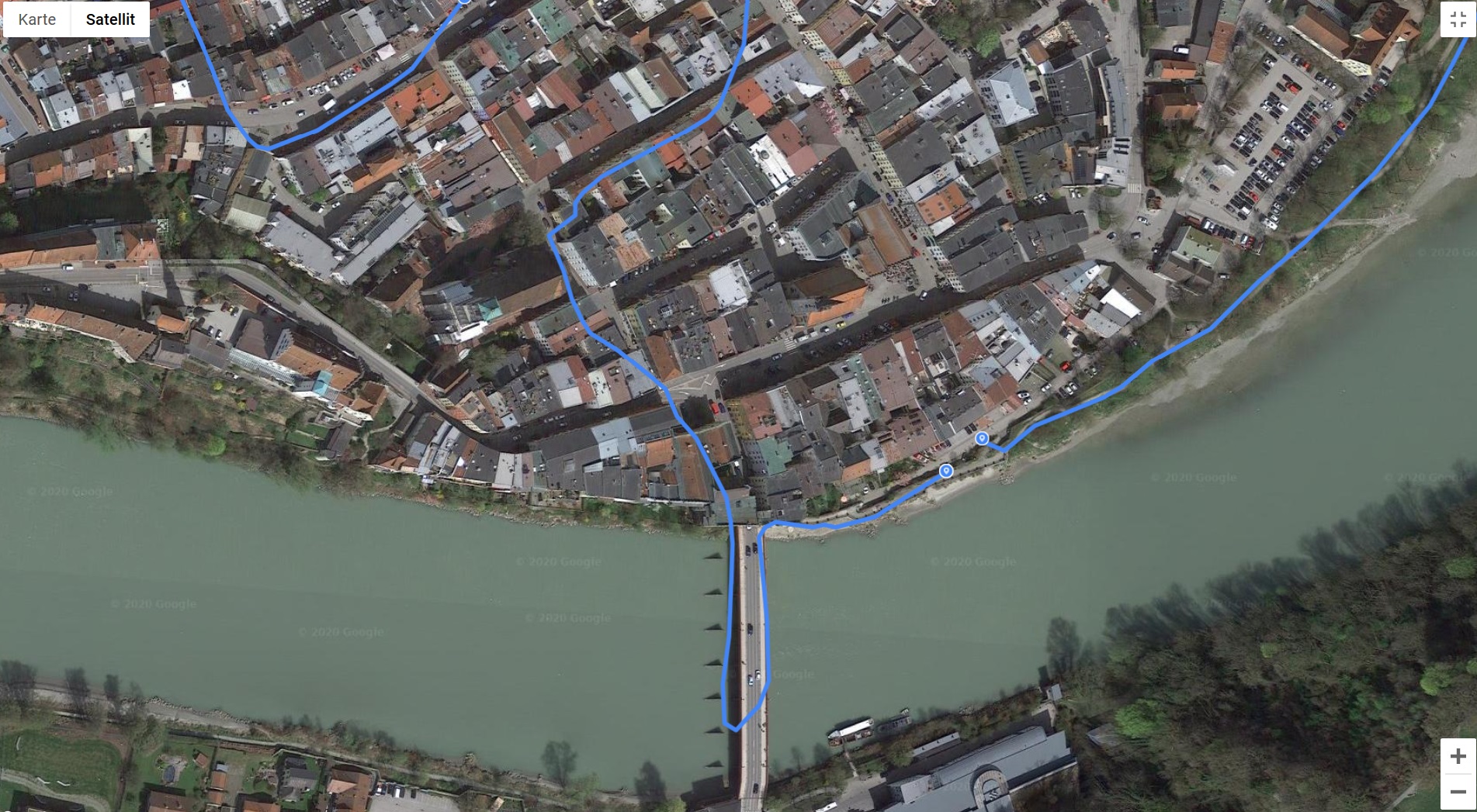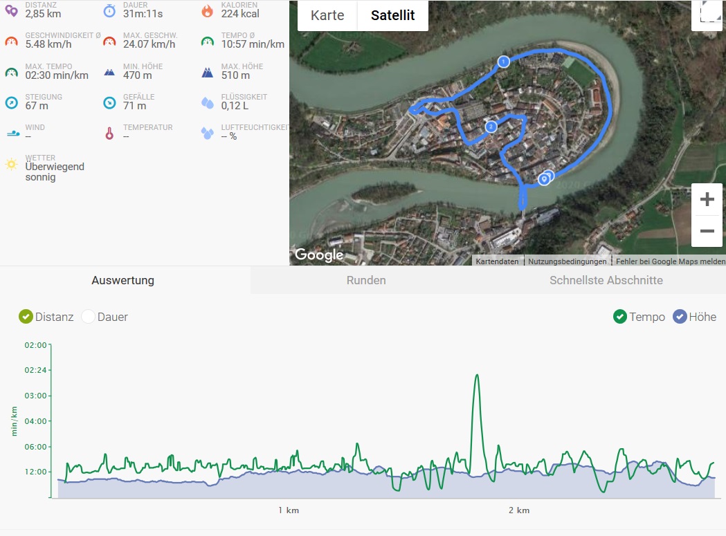 The GPS module also had to prove itself in real-world conditions, which is why we took it and the professional navi Garmin Edge 520 along with us on a bike ride. The results of the P30 Lite New Edition were mixed: On the bridge, we appear to be floating across the water and in other areas through buildings and while the accuracy of the Garmin Edge 520 was not perfect either, it was far higher.