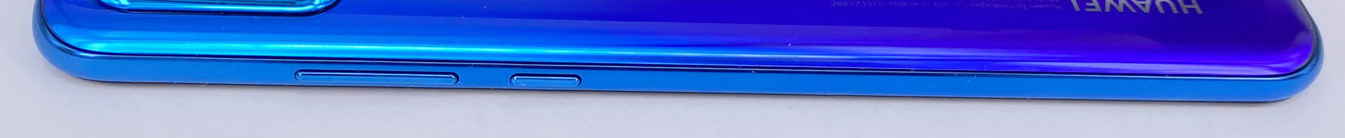 There is a new color variant of the P30 Lite New Edition's case: Aside from the established blue color gradient and pure black versions, there is now also a lighter variation called "Breathing Crystal". A white back is available as well, although the available colors can vary depending on the country. At 159 grams, the P30 Lite New Edition is one of the more lightweight smartphones in its price category. Although the dimensions are normal for a modern smartphone, they may be too large for users with small hands.