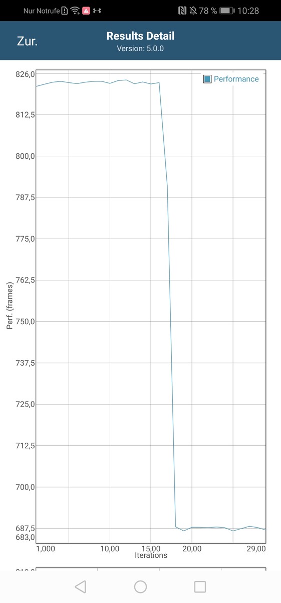 As with the predecessor, the performance drops by 20% during the GFXBench battery test after around 17 loops of the demanding Manhattan 3.1 benchmark. Thus, users should not expect the full performance to be available after prolonged load.
