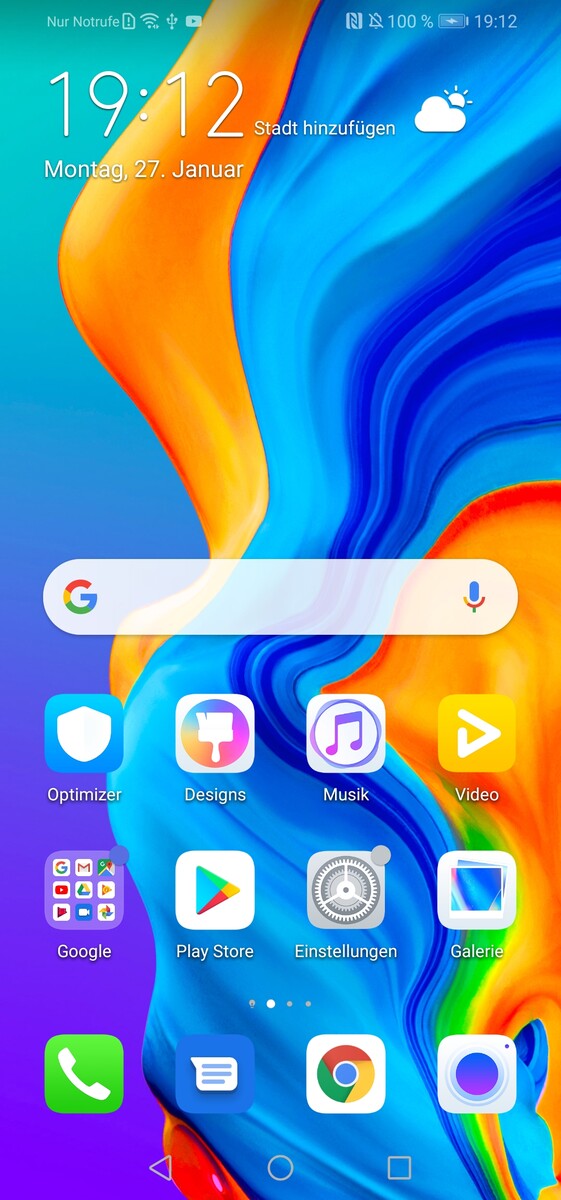 Even though the construction quality is good, applying pressure to the front results in display distortions. While the P30 Lite New Edition lies in the hand well, there is no IP certification for protection against the elements.