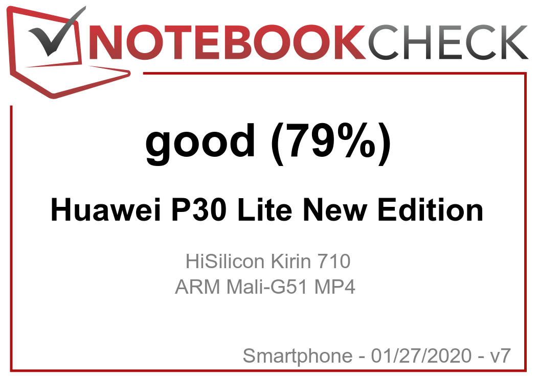 | Huawei P30 Lite New Edition 3340 mAh | Samsung Galaxy A51 4000 mAh | Huawei P30 Lite 3340 mAh | Xiaomi Mi 9T 4000 mAh | Google Pixel 3a 3000 mAh | Average HiSilicon Kirin 710 | Average of class Smartphone | |