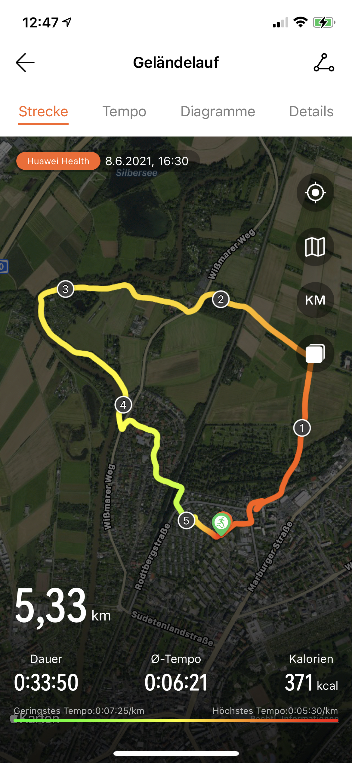 In the test, the Huawei Watch 3 Pro found the position quickly when it was still connected to the smartphone at startup. The search for the GPS signal took considerably longer when the smartphone was not nearby at the start of the workout.