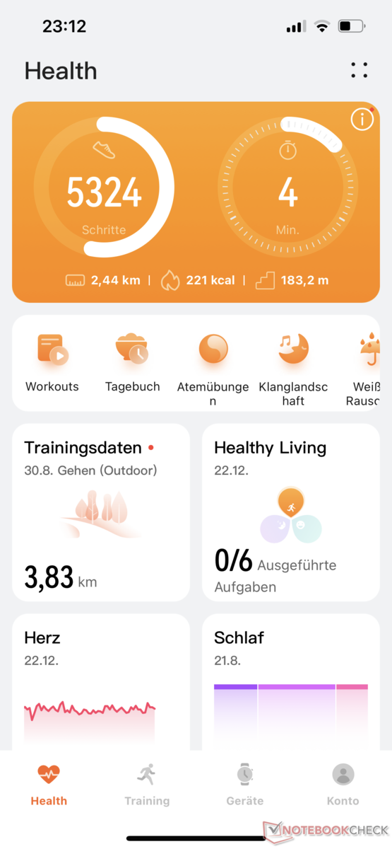 As usual for the manufacturer's smartwatches, the setup is done via the Huawei Health app. The process is well explained in the app, which is available for iOS and Android (download via QR code and not the Play Store) as well as HarmonyOS and establishes a pairing of the smartwatch with the smartphone via Bluetooth. The process was successful in the test with an iPhone 13 Pro.