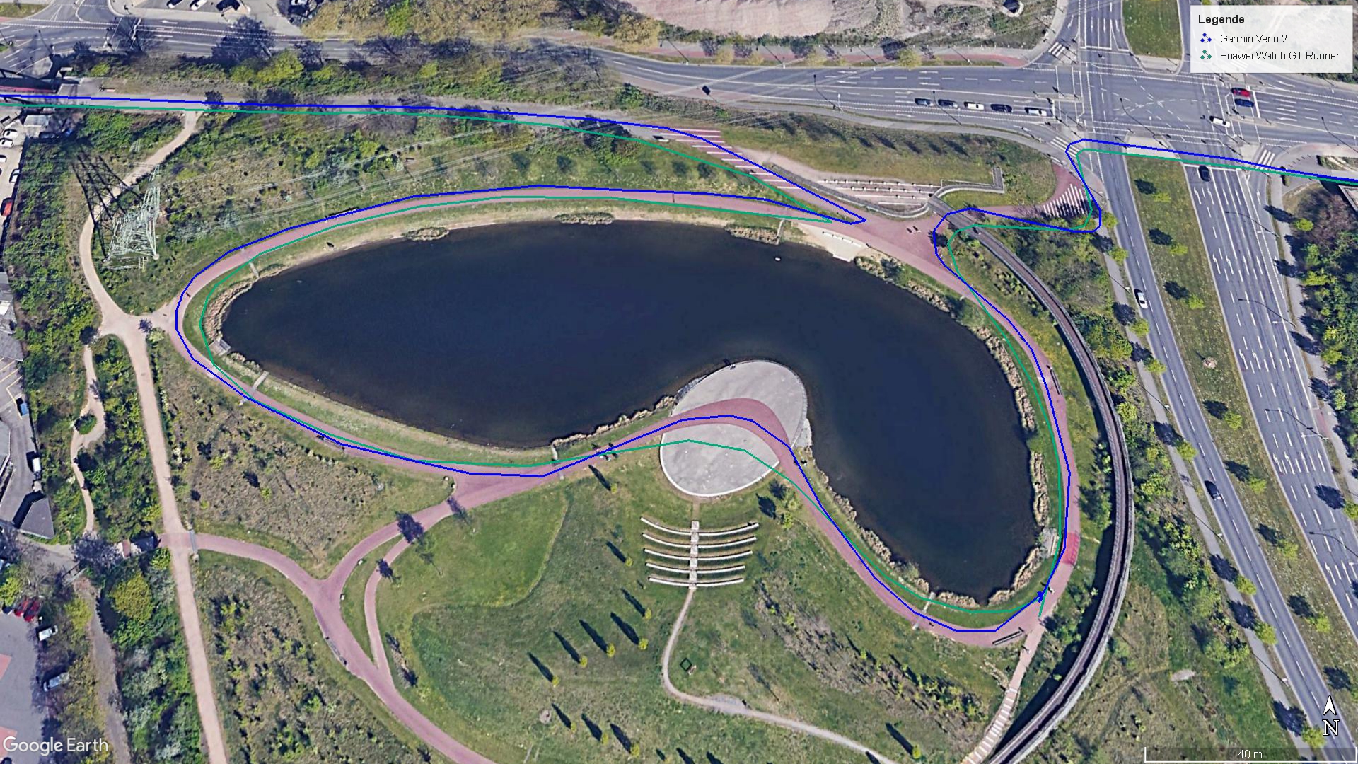 Thanks to dual-band GNSS, the Huawei Watch very quickly finds a GPS connection when a workout is started. Besides GPS, the watch also supports Beidou, GLONASS, Galileo, and QZSS. The accuracy of the measurement is convincing: The deviation from the Garmin Venu 2 reference device is only 18 meters (~59 feet) on a five-kilometer (~3.1 miles) bike lap. In addition, the GT Runner can also indicate altitude meters covered via its barometer.