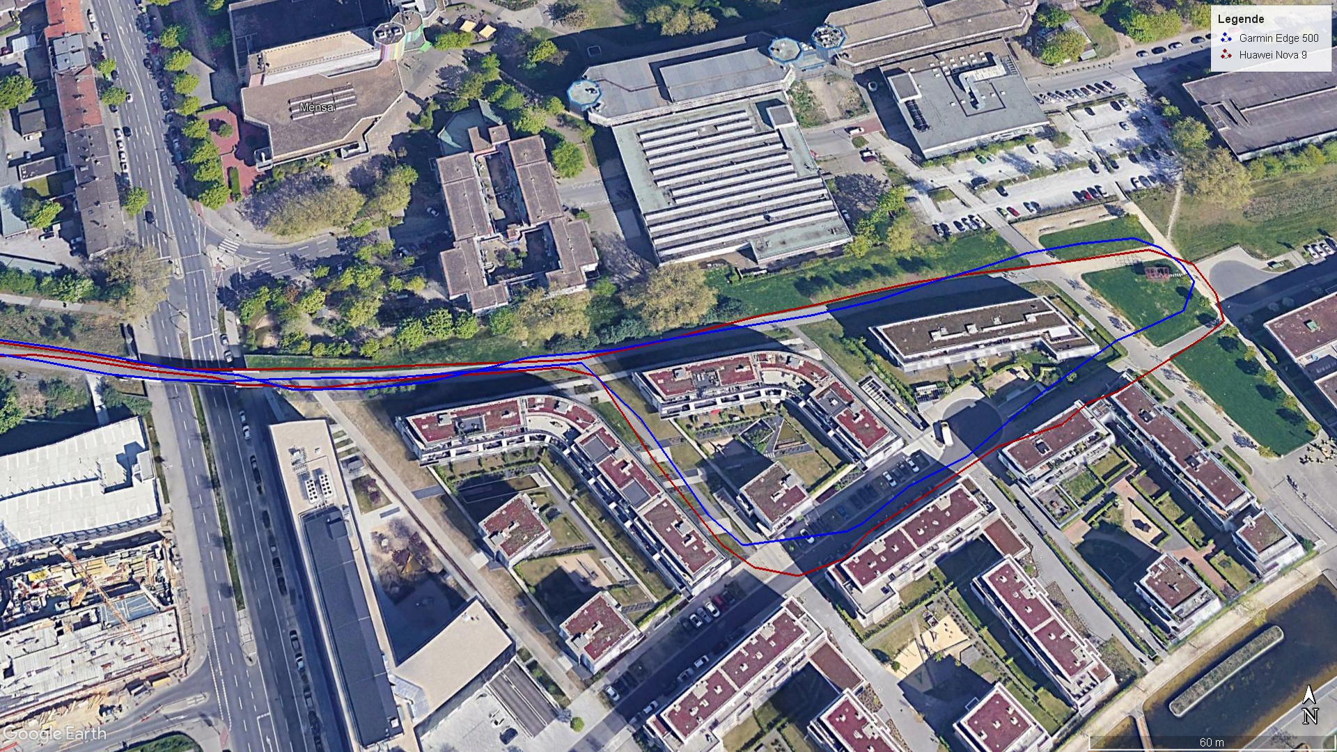 In our mandatory bike tour, the nova 9 records some slightly more sweeping curve lines compared to our Garmin Edge 500 reference device.