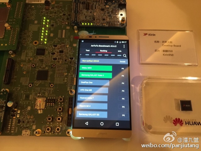 Other new features include an integrated LTE cat. 6 modem with support for VoLTE. The popular AnTuTu benchmark returns a score of 82945 points for the Kirin 950 according to the manufacturer. This is compared to the Galaxy S6 Edge Plus, iPhone 6S Plus, and OnePlus 2 with 67512 points, 58869 points, and 58535 points, respectively. Of course, we'll have to wait until the launch of the Mate 8 to put Huawei's claims to the test.