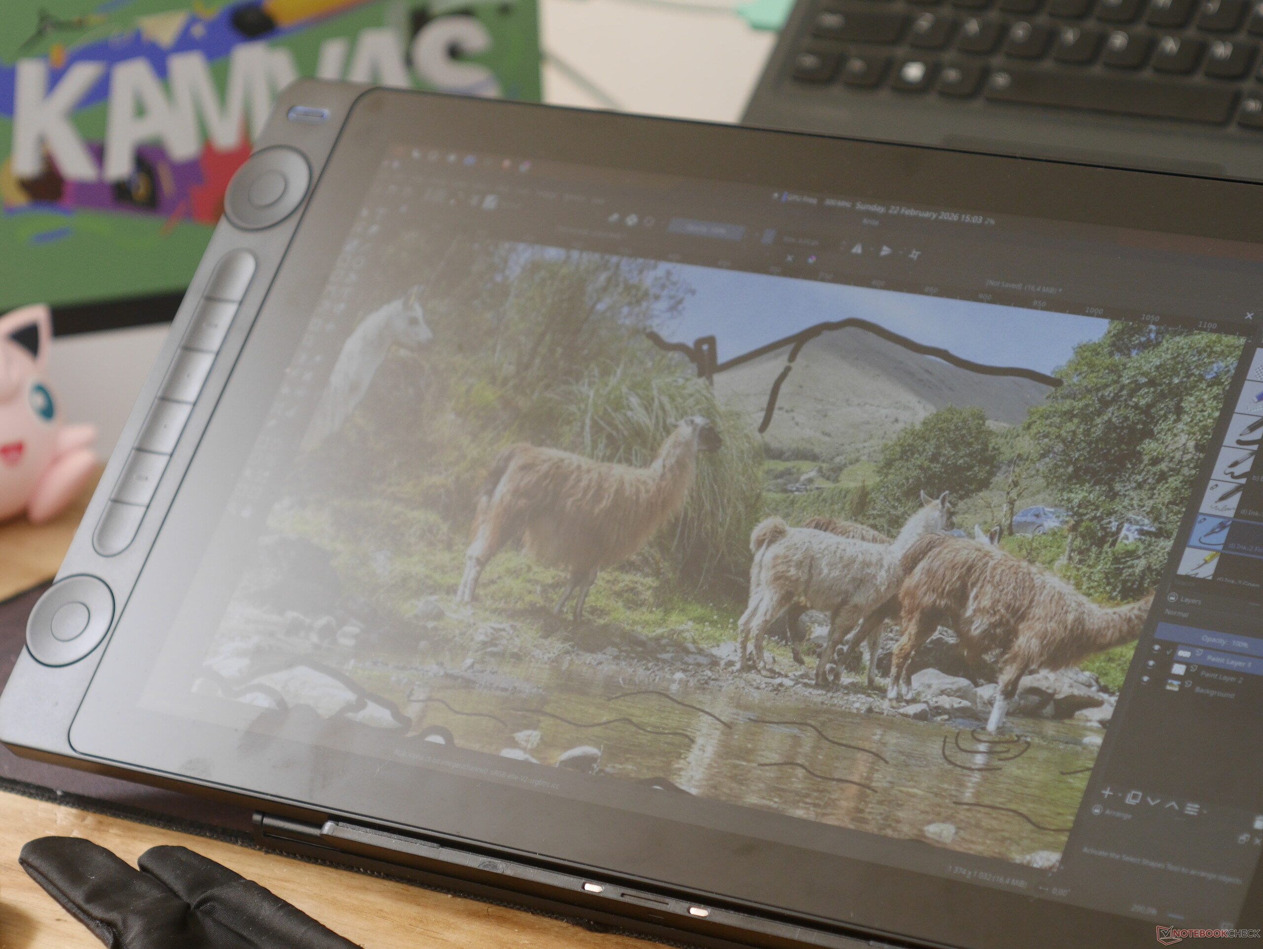 Software weirdness aside, the stock pressure curve is sensible, but it is also customisable in both the Huion driver and in KDE settings. After some minor tweaks to the starting pressure, the pen was incredibly predictable and suited my use case of ideation, sketching, and concept drawings for CNC and 3D printing projects. I had no problems joining ends of curves or creating smooth curves or straight edges, and the large screen meant that avoiding the corners, where the pen lost some accuracy, was easy. This is especially true for apps like Krita and GIMP, which have tool panels on the left and right of the canvas anyway. The matte of the display is largely a preference thing, and coming from an iPad, it might take some getting used to, but it adds some minor resistance and tactile feedback that makes controlling line quality and pressure easy. The matte display does a good job tamping harsh glare and reflections, but in a brightly lit room, it can wash out the display, making your sketches difficult to see.