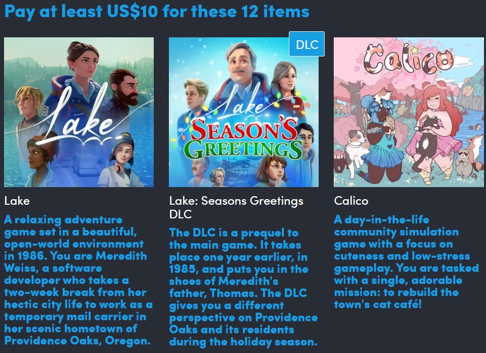 - Lake - Season's Greetings: The DLC is a prequel to the main game. It is set in 1985, and puts you in the shoes of Meredith's father, Thomas. It costs $9.99 on Steam.