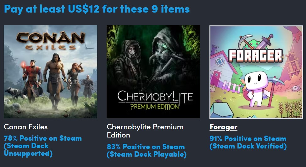 - Conan Exiles: Worth $39.99 on Steam, this open-world survival game throws you into the harsh Exiled Lands from the story of Conan the Barbarian. You will gather, build, hunt, use sorcery, and fight to dominate. It has about 109,000 reviews on Steam, and 79% of the reviews are positive. Conan Exiles lacks Steam Deck support.