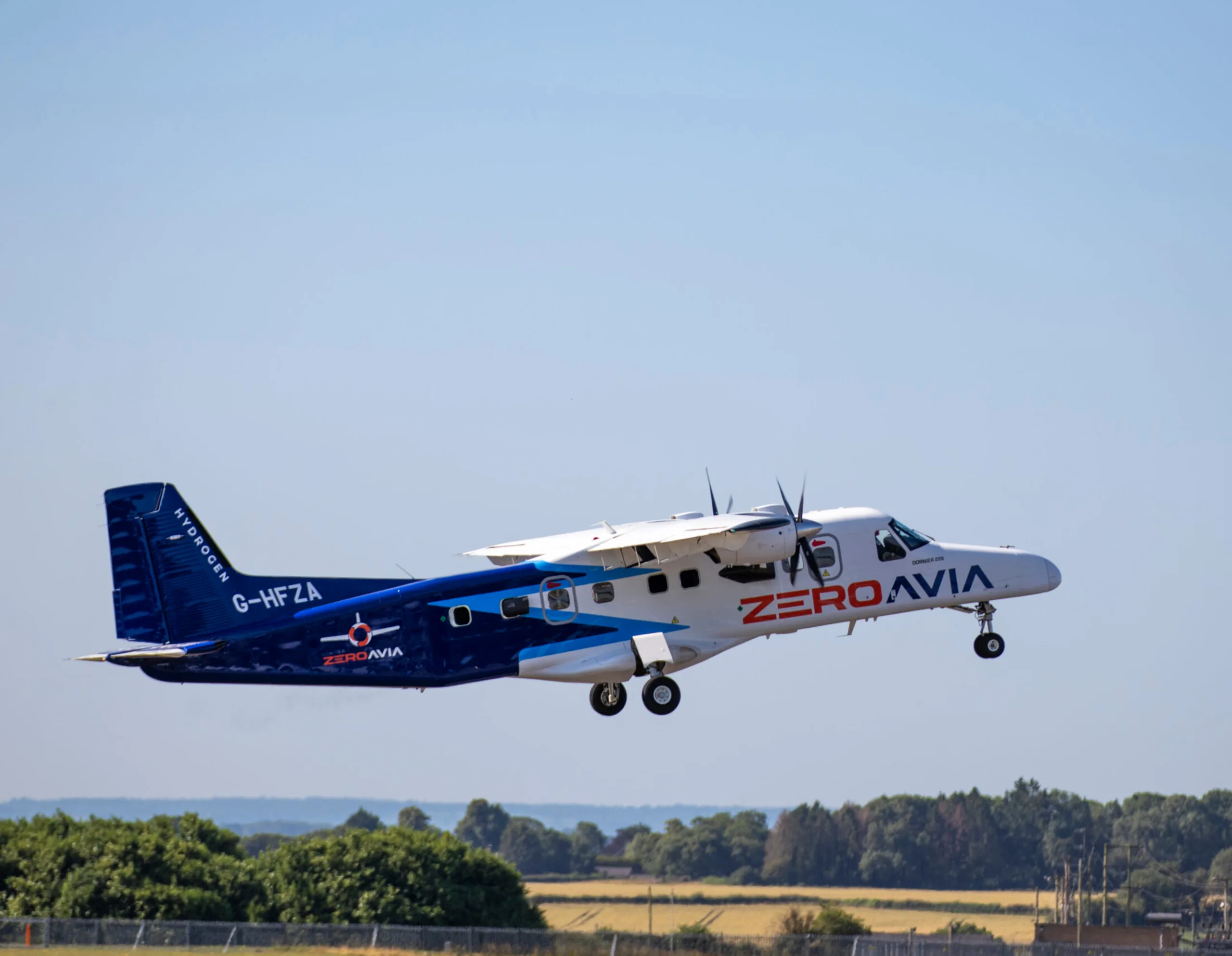 The aircraft took off from Cotswold Airport in the UK, with the left side of the aircraft powered by a combination of hydrogen fuel cells and batteries, and the right side using conventional paraffin.