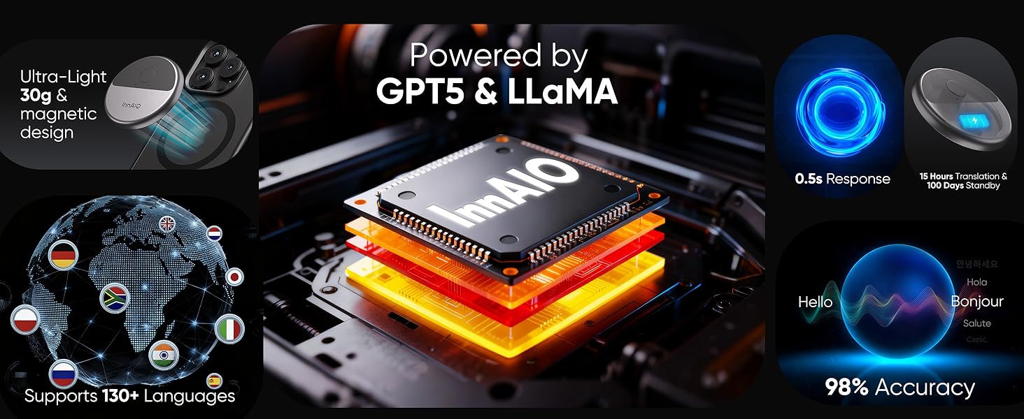 Per the company, the translator is powered by GPT-5 and InnAIO's language model, and there's support for over 130 languages. Users can also switch between dialects, and InnAIO says that the device features a translation speed of 0.5 seconds and boasts an accuracy of 98%.