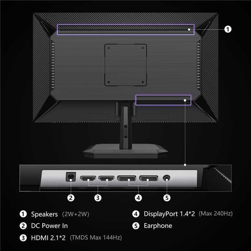 Connectivity is future-proofed with dual HDMI 2.1 ports and DisplayPort 1.4, ensuring full compatibility with the latest consoles, including PlayStation 5 and Xbox, at native 1440p resolution and 240Hz refresh rates. The monitor also includes built-in 2W speakers and a private audio zone for immersive sound whether gaming late into the night or during quick sessions.