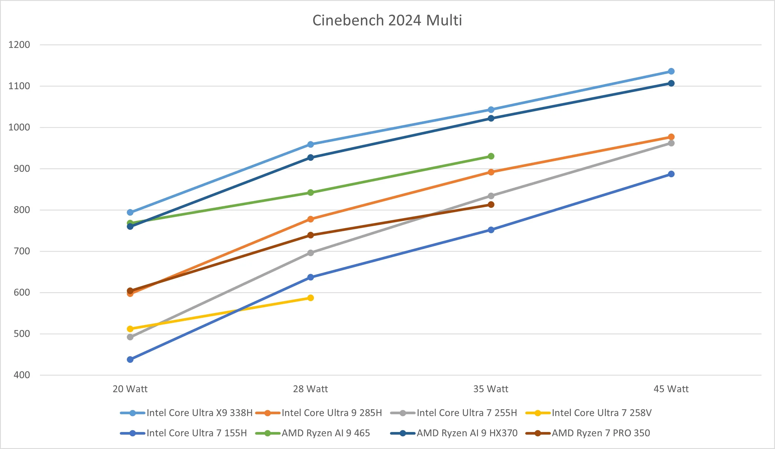 | Intel Core Ultra X9 338H | 794 points | 959 points | 1,043 points | 1,136 points |