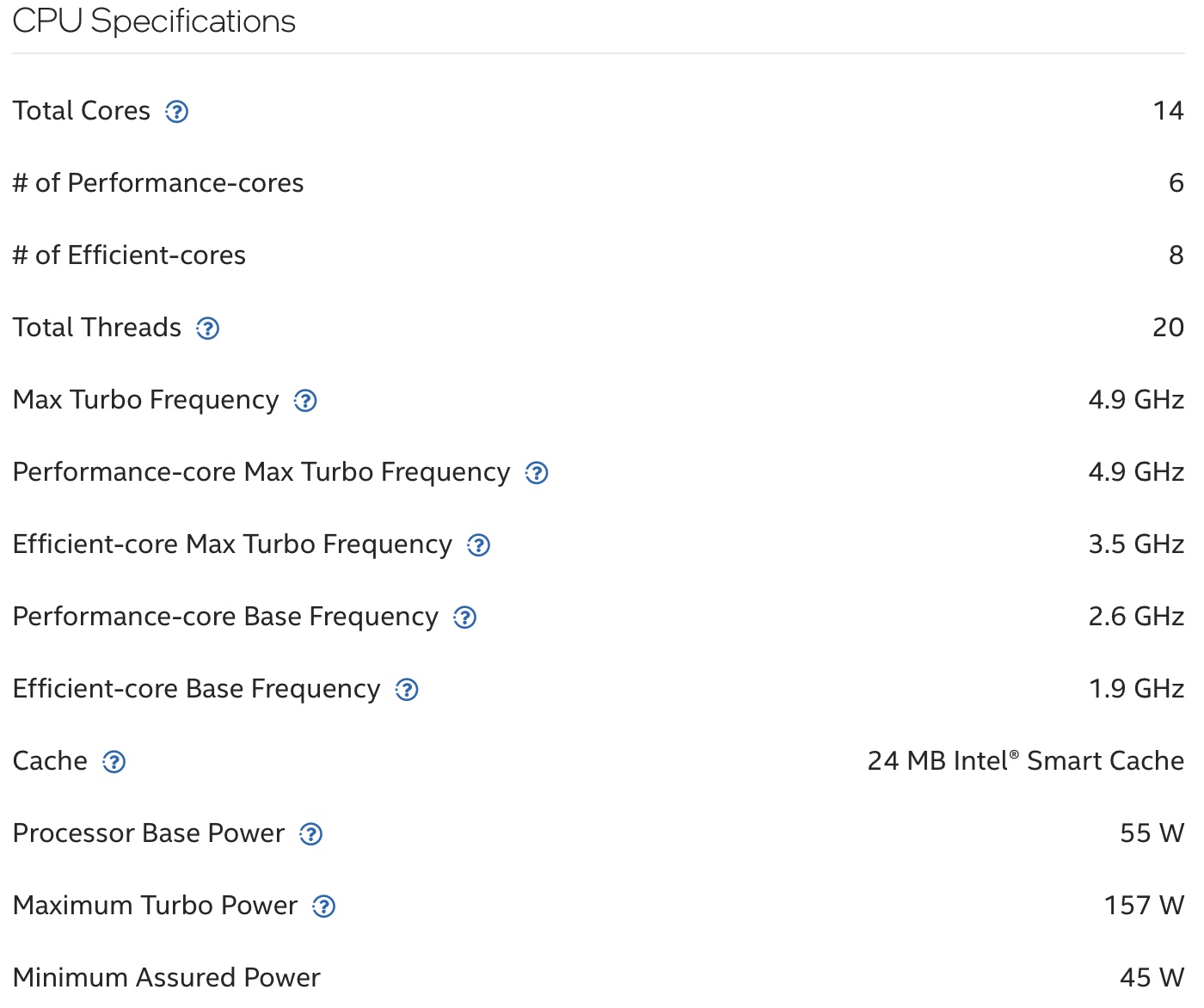 The layout is the exact same, featuring a 14-core setup consisting of six high-performance and eight high-efficiency cores. The maximum P-core clock speed has also been left unchanged, with a max turbo frequency of 4.9 GHz. The E-core boost clock has been reduced by 100 MHz, which now maxes out at 3.5 GHz. The CPU sticks with 24 MB of smart cache, as well as 157-watt peak TDP.