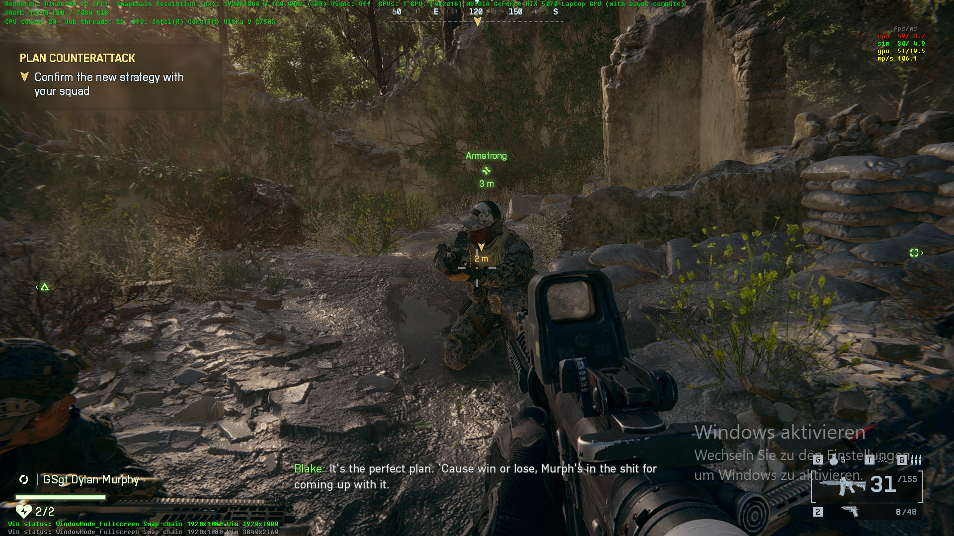 If you switch to the QHD resolution, the game will show a VRAM warning message and we can also see the VRAM filling up during the benchmark run and it even surpasses 8 GB. This results in isolated stutters, but to be honest, this is not a huge issue for this type of game. In addition to the benchmark, we also played the campaign with these settings (w/o DLSS) and we did not really notice any serious stutters that would affect our gaming experience.