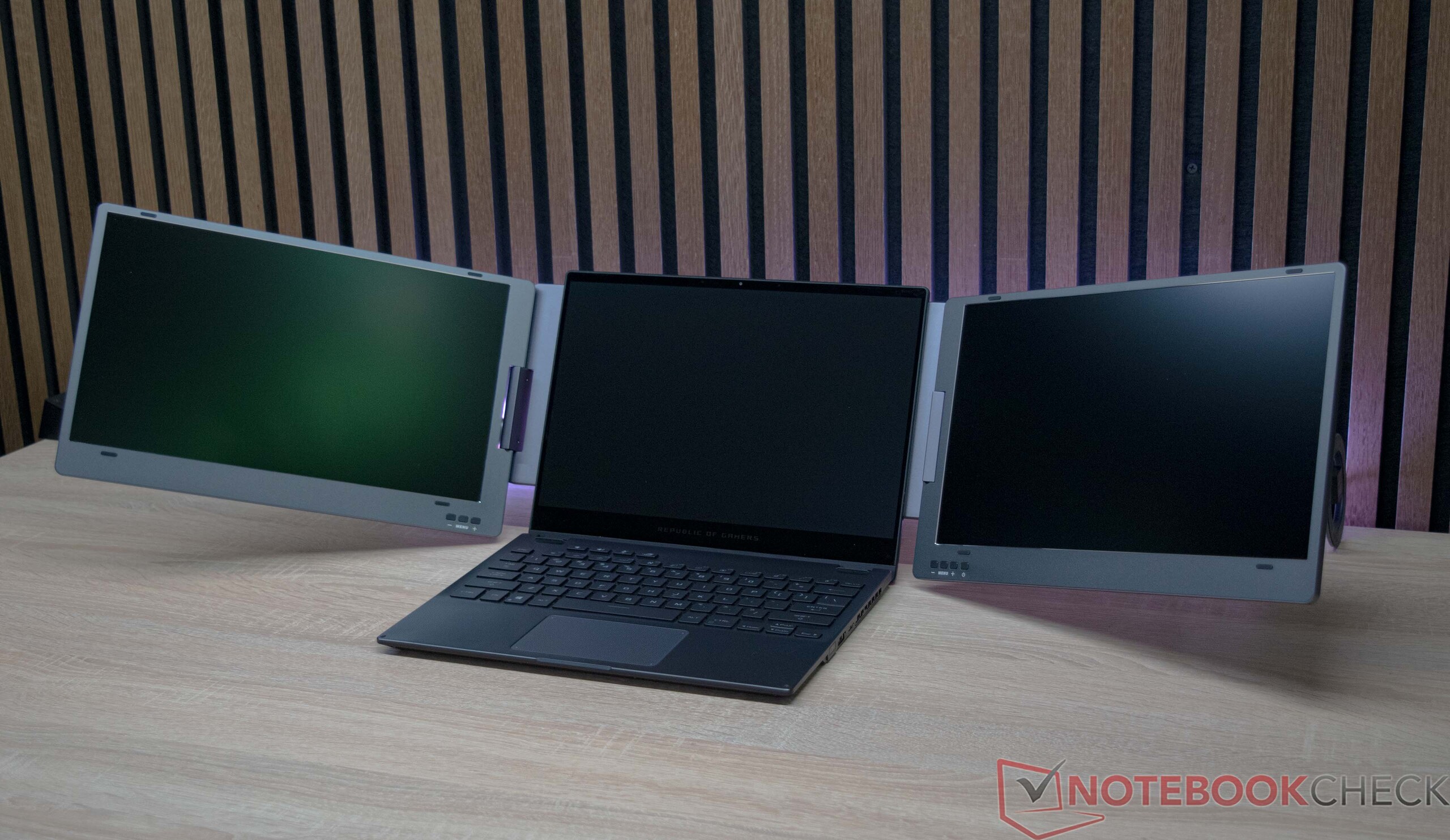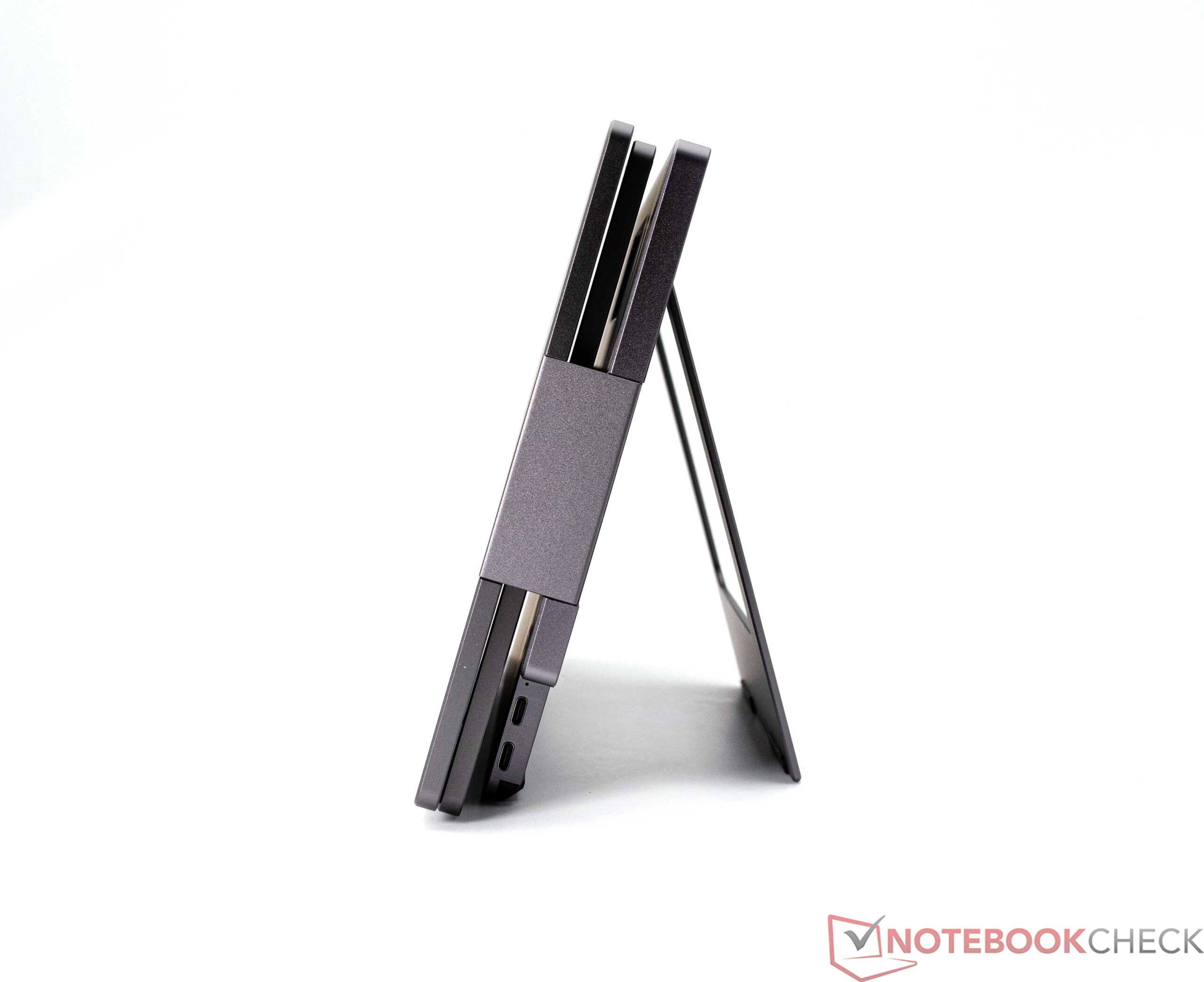 If you are on the lookout for portable displays for mobile use, then you will probably already have heard of the name KYY. Generally, the manufacturer offers a large palette of external displays which cover a wide range of uses. With the X90A, the manufacturer has released a special display onto the market which basically consists of two 14-inch screens that can be placed to the left and right of a laptop or tablet. Thanks to their two 360-degree hinges, the screens can cover a wide variety of possible use scenarios.
