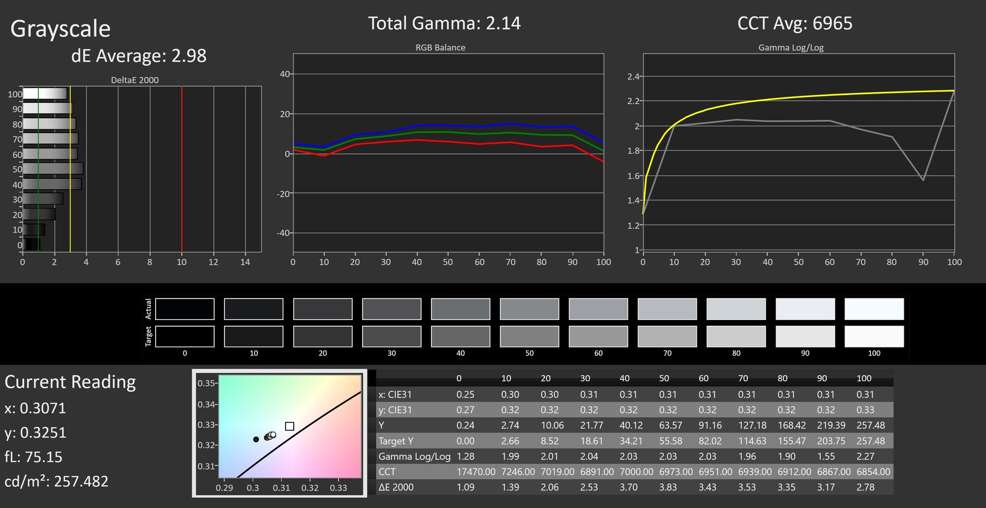 ΔE Greyscale Calman: 2.98 | ∀{0.09-98 Ø5}