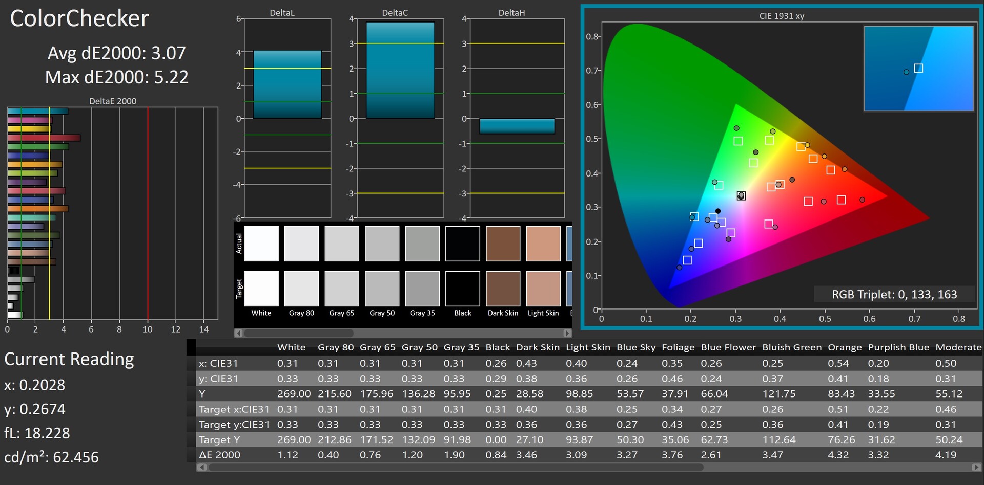 | Colorchecker dE 2000 calibrated * | 1.9 | 2.19 | |||