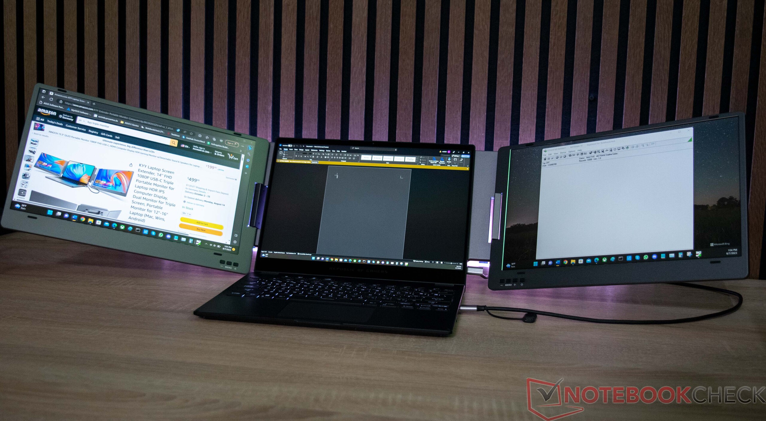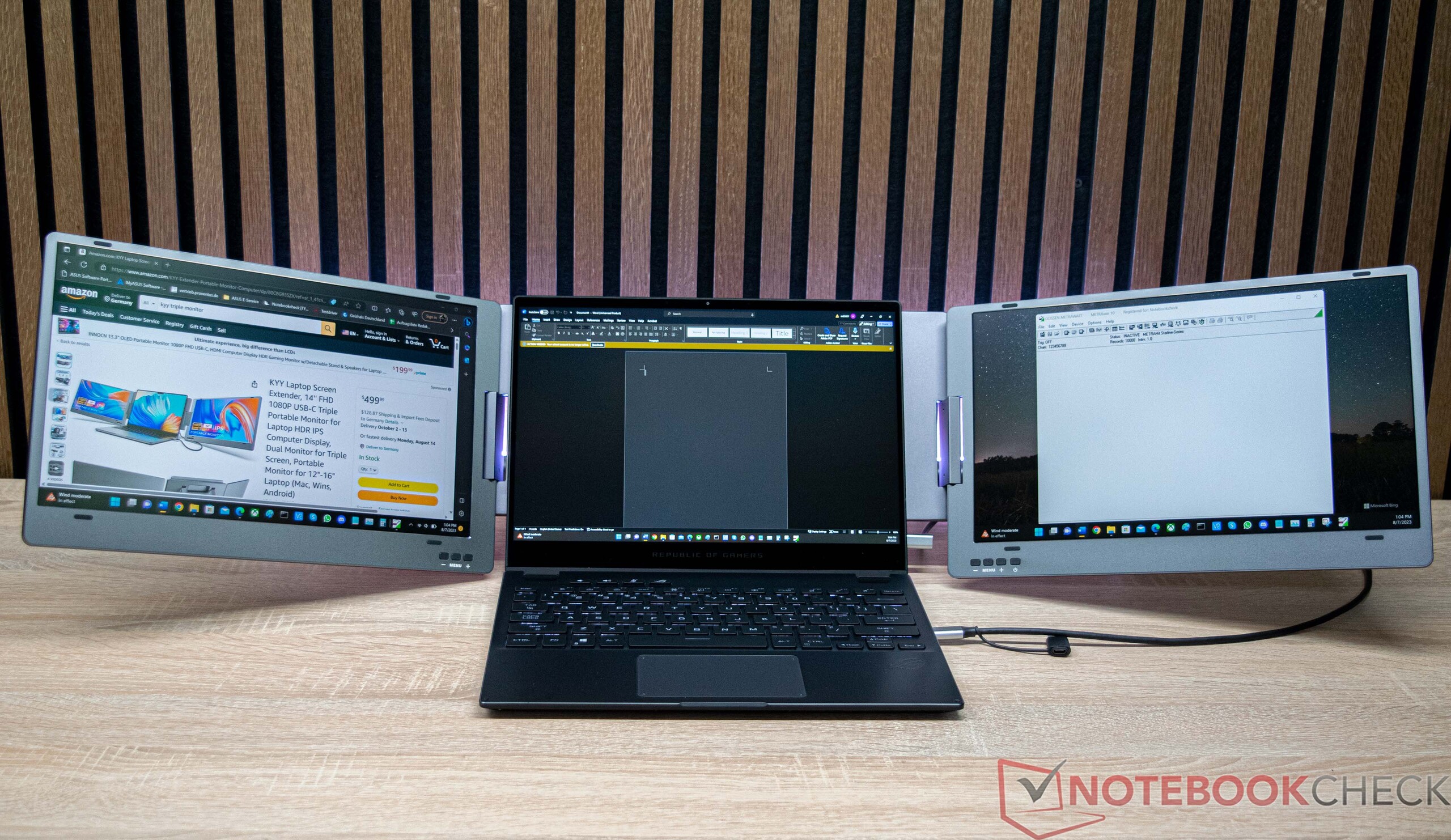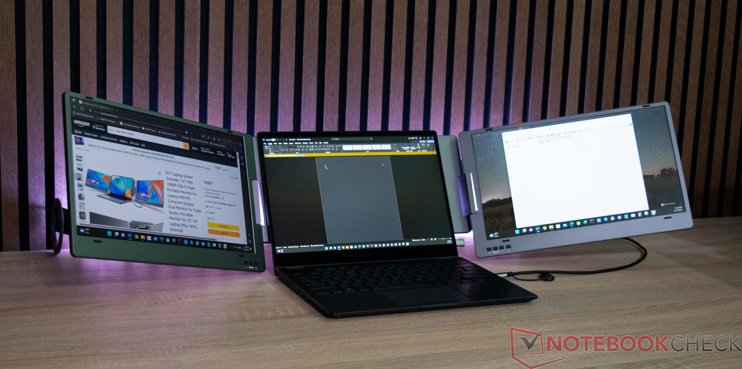 The KYY X90A's two 14-inch displays offer a great alternative to quickly expand your digital workspace. With only one cable, both screens can be powered and in combination with a laptop or tablet, your can quickly create a triple-screen setup on your desk. Unfortunately, our measurements showed that both of the screens' brightness levels were below what was stated by the manufacturer.