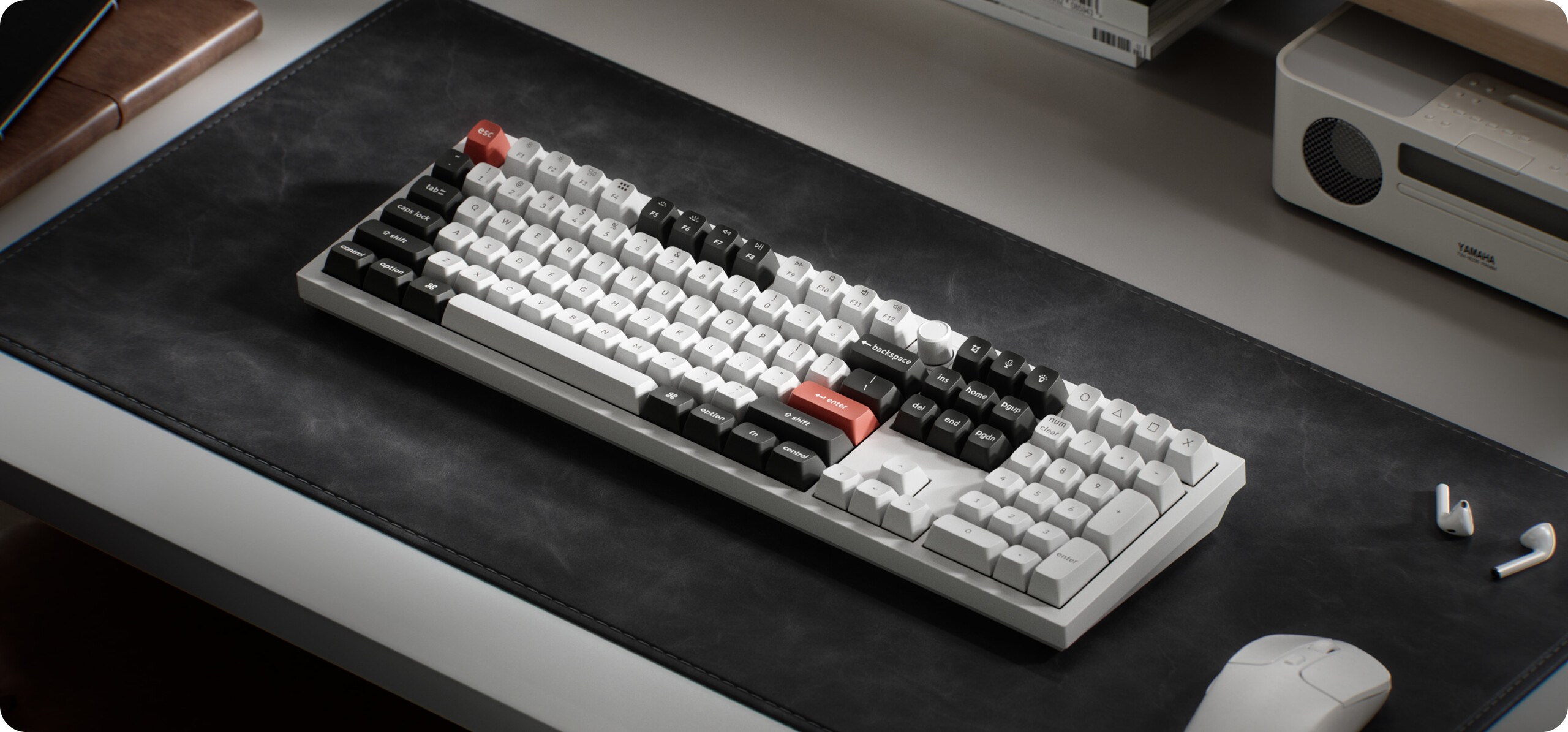 The Keychron V5 Ultra take most of the advancements found in the Q Ultra keyboards and combine them with a slightly more affordable chassis and keycaps. The new V Ultra series keyboards come in the V1 Ultra, which has the same 75% layout as the Q1 Ultra, the V3 Ultra, following the Q3 Ultra, and the V5 Ultra, which uses an 1800 layout as opposed to the full-size Q6 Ultra. The V5 Ultra still delivers a num pad and a customisable knob, but it also opts for a 1u zero key and only includes some of the navigation keys on top of the num pad instead of between the num pad and the navigation cluster. This layout is somewhat similar to the layout of the Epomaker Galaxy 100 we reviewed prior, but it shrinks the layout even further to allow for more mouse space.