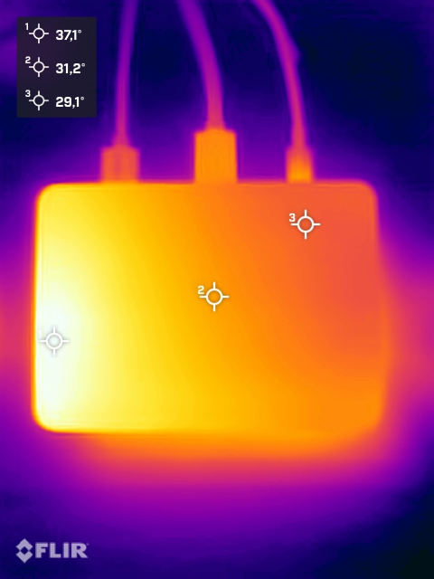 The housing of the Khadas Mind Pro only heats slightly when idle. Thanks to the metal construction, the heat generated is also distributed relatively evenly over the surface. Under load, the casing temperature increases significantly compared to idle mode. Nevertheless, the measured surface temperatures of just over 40 C remain in a non-critical range overall.