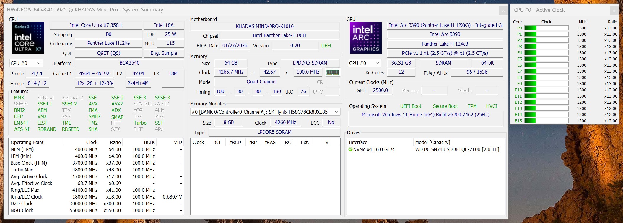 | Khadas Mind Pro Intel Core Ultra X7 358H ⎘ Intel Arc B390 12 Xe3 Panther Lake iGPU ⎘ 64 GB Memory, 2048 GB SSD | List Price: 1799€ | 566 g | 105 x 146 x 58 mm | |