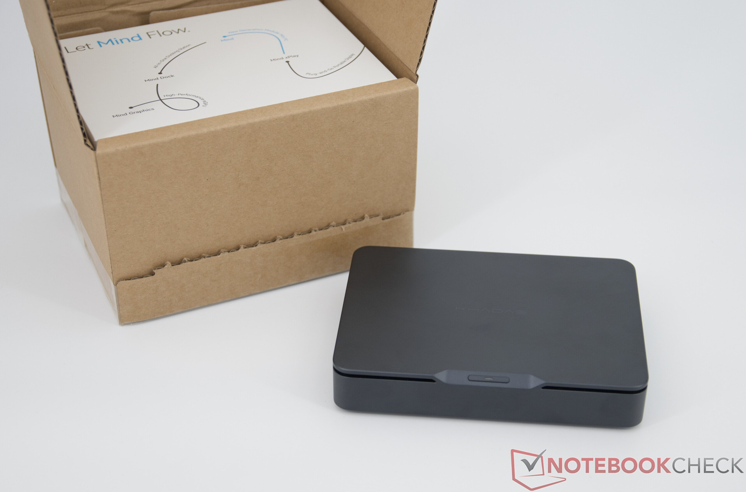 The scope of delivery is deliberately minimalist: the packaging only contains the mini PC itself and a 100-watt power supply unit, including a USB-C cable. Optional accessories such as the Mind Dock, the Mind Leather Case, or the Mind Graphics 2 Dock must be purchased separately. With the Mind xPlay, the mini PC can be expanded into a kind of laptop replacement, which means the manufacturer covers almost all conceivable application scenarios.