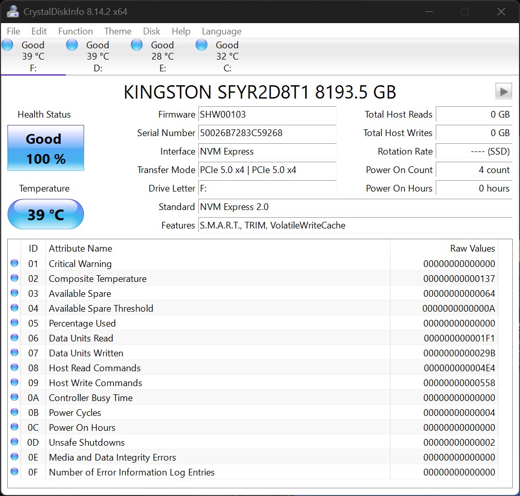 | Interface | PCIe 5.0 x4 |