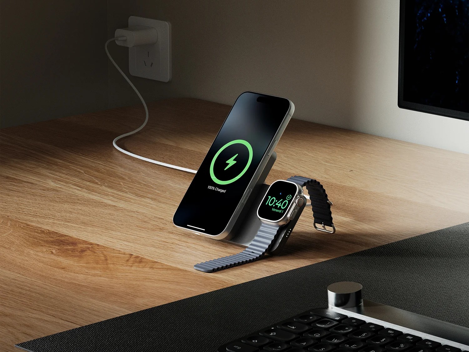 As expected, the power bank is a bit thicker than most standard wireless models. It measures 4.13 x 2.7 x 0.86 inches and weighs 256.5 grams. Still, for anyone looking to charge all their Apple devices at once while on the go, it’s a reasonable compromise. There’s also a built-in kickstand that makes it convenient to use on a desk or nightstand.