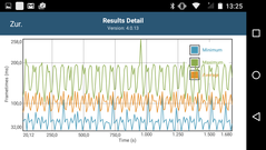 To keep the temperatures in check, LG fortunately doesn't have to resort to any tricks: the SoC isn't subjected to throttling - even during longer periods of stress. During the battery test of the GFXBench benchmark we didn't observer throttling even after 30 subsequent loops. The processor performance fluctuates minimally, but remains consistently high.