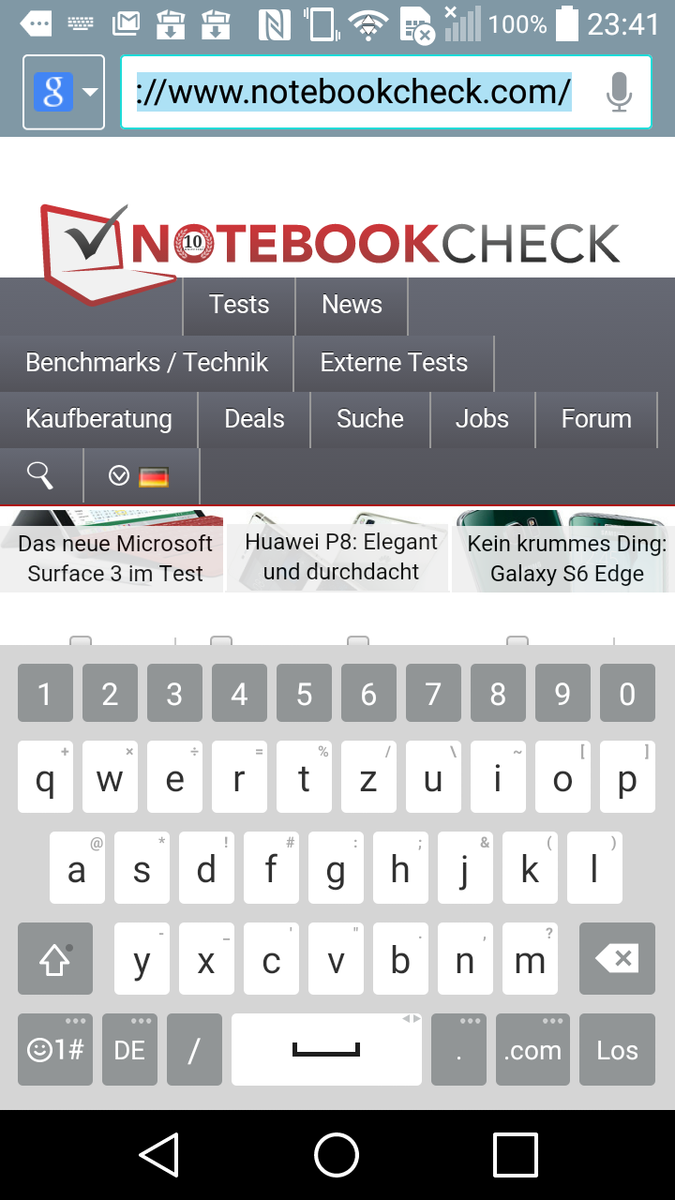 LG has made some changes to the keyboard of the Smartphone as well: instead of the standard Android fare, the user will be greeted by the LG keyboard. Sadly, the user will not have the option of switching to the Google standard keyboard. The LG keyboard offers a good typing experience and a plenitude of settings: height adjustment, speech commands and customization of the bottom row of keys. However, some users will feel that the LG keyboard is uncomfortably cluttered with icons and would prefer to use the original Google keyboard. The Play Store offers many alternatives to the preinstalled keyboard of our test model.