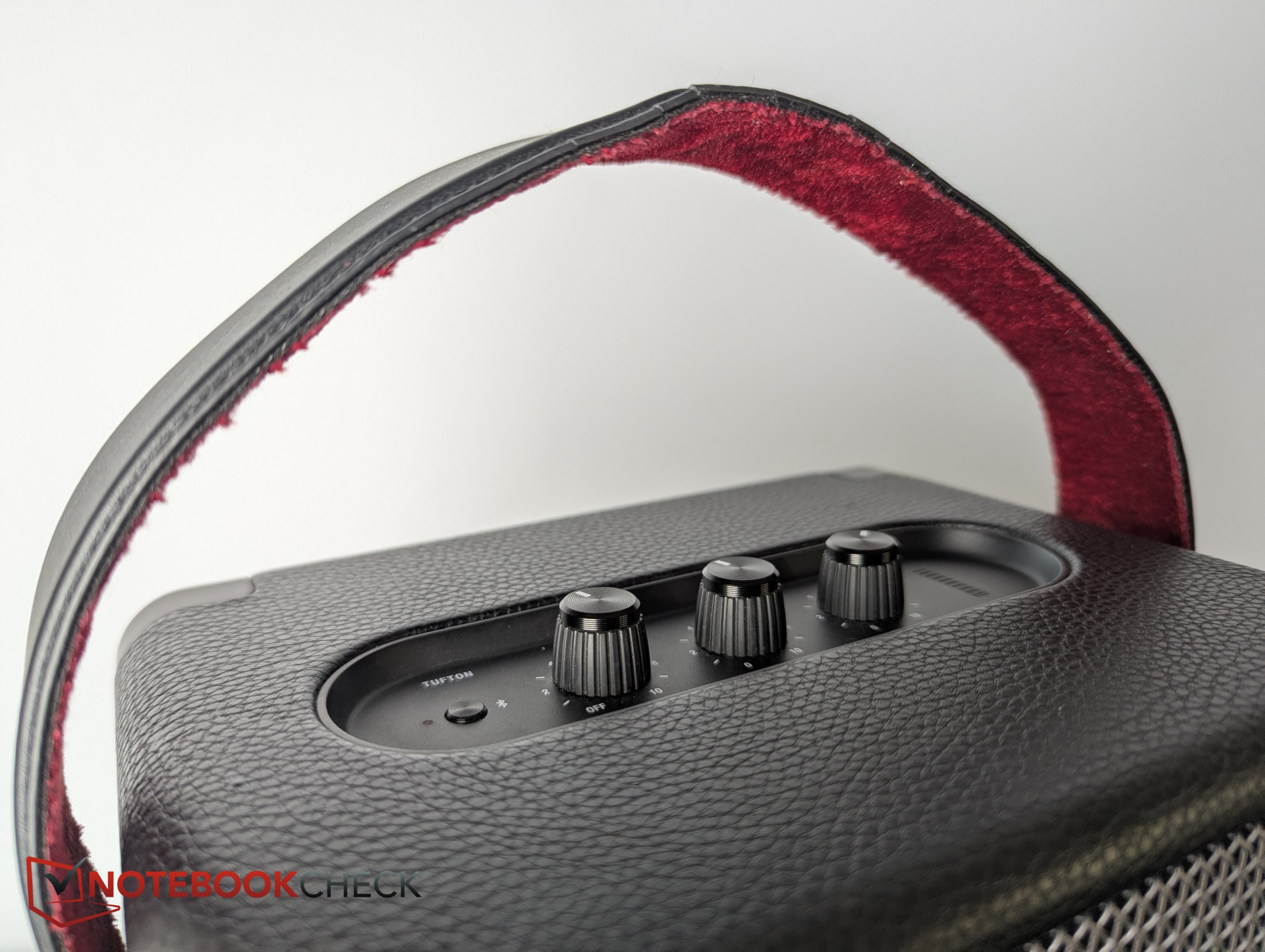 The Marshall Tufton stands out from the Bluetooth speaker competition with its stylish design, but also with its sheer size. The latter means that Marshall can install a really powerful woofer here. Although this ultimately emphasizes kick drums rather than detailed bass tones, it packs a real punch and makes for really fun music listening. Turning the controls also has a really noticeable effect, allowing you to adapt the sound of the Tufton to the genre or specific song.