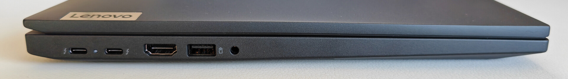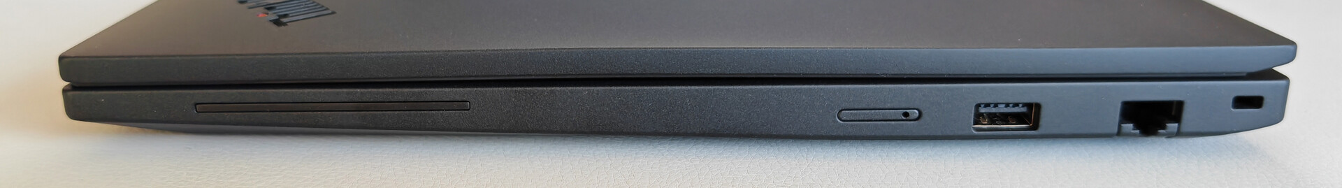There are two full Thunderbolt 4 ports and two regular USB-A ports. Our test device also has a nano SIM card reader, and a SmartCard reader is also available as an option. The Wi-Fi 7 module achieved stable and high transfer rates in the test. The 5 MP webcam with mechanical aperture and IR sensor takes average pictures.