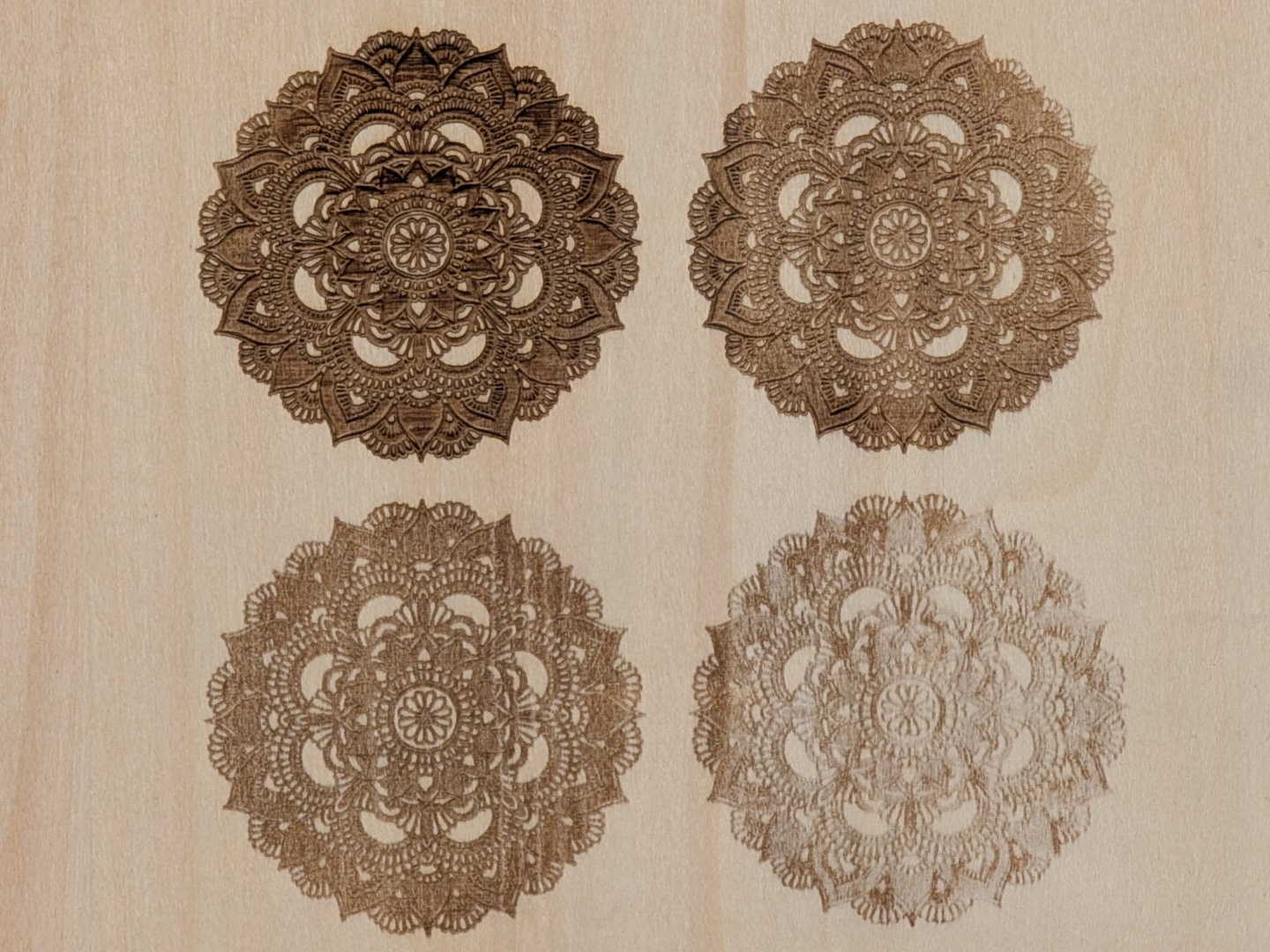 LaserPecker has a handy guide for the power and depth values for different materials, which is a good starting point. We found that with a little trial and error, the results were quite impressive. The engraved lines were sharp and accurate, lending to an incredible level of detail, no matter the material. We tested all the different materials provided by LaserPecker in the materials kit, and then some. LDS has a bunch of SVGs and other files to test the capability of the engraver and it showed consistent, accurate, and detailed results. Check out the photos and video compilation attached.