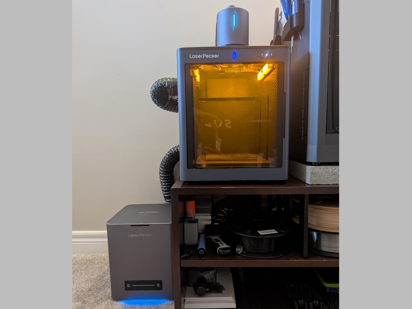 Noise, however, is a different story. Even when not running an operation, the exhaust fan is constantly running, though at a much lower volume. Once the engraving starts, it jumps to its (adjustable) max speed which is quite loud. And, if the air purifier is running at anything above level 1 (indicated by a light bar), it’s significantly louder. Of course, noise is only an issue if you are in the same room.