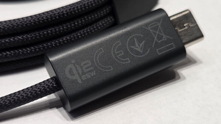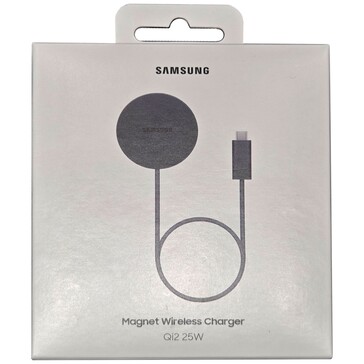The USB-C connector carries the “Qi2 25W” logo, and the packaging also confirms that the charger supports the current version of the Qi2 standard. This allows compatible smartphones to be charged wirelessly at up to 25 watts. This includes the Apple iPhone 17, while the Galaxy S25 can only be charged at up to 15 watts due to a limitation of the smartphone, not the charger. The back of the packaging also notes that use with Samsung Galaxy smartphones is only possible if a Qi2-compatible protective case with magnets is used.