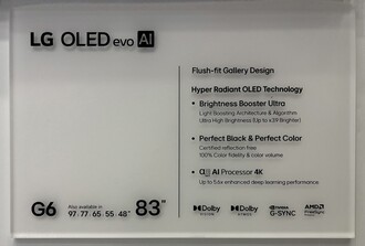Unsurprisingly, the G series sticks with the gallery design, which allows the smart TV to be mounted flush against a wall. The LG G6 OLED will be offered with screen sizes of 48, 55, 65, 77, 83 and 97 inches. LG is equipping these televisions with a new tandem OLED panel that’ll be marketed as a "Hyper Radiant" OLED panel with "Brightness Booster Ultra". This technology apparently makes the set 3.9 times brighter than the more affordable LG B6 OLED, although the leaked marketing material does not provide exact numbers or a direct comparison to the predecessor.
