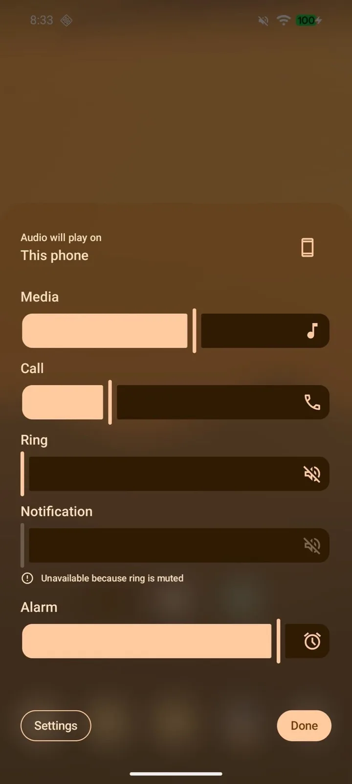 This new design approach is clearly noticeable in the volume panel, for example. Instead of a solid background as before, the background is now slightly transparent, as elements behind it are blurred much more heavily than on Apple devices in order to improve readability. Google tints these transparent areas using the accent color that’s been selected by the user.