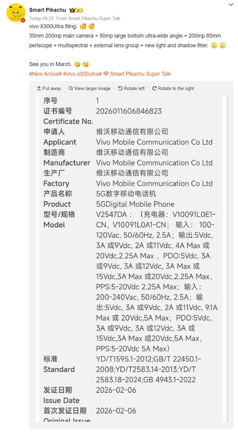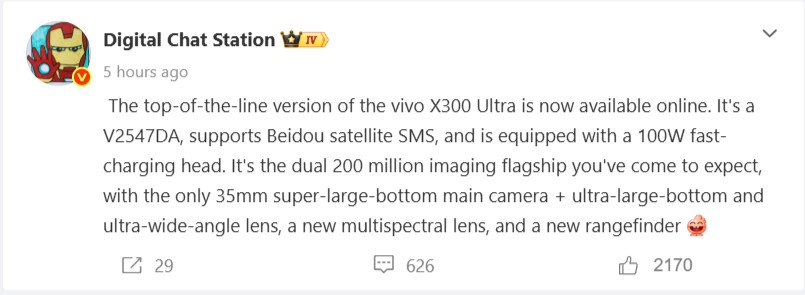 Leakers such as Smart Pikachu and Digital Chat Station, who stress that they have already seen test units firsthand, have also provided some new tidbits of information about the Vivo X300 Ultra. The former writes, for example, about improved video quality when using the teleconverter, which has also been redesigned and, according to Digital Chat Station is far ahead of competing smartphones. Speculation is abuzz about what the "new job" could be, with optical zoom being mentioned several times. This would confirm earlier rumors about optical zoom, although possibly only via external optics and not integrated directly into the smartphone like the Xiaomi 17 Ultra.