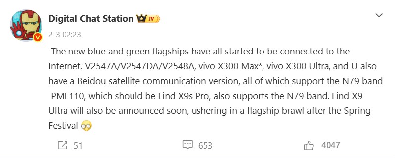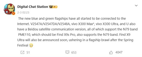 A significant advantage of the Vivo X200 Ultra over its competitors was, and still is, its 1/1.28-inch ultra-wide-angle camera. This feature is likely to be further enhanced on the successor model, as Digital Chat Station recently explained on Weibo. Video recordings in particular are expected to benefit from the industry's best ultra-wide angle. Another interesting aspect of this post is a comment mentioning a Vivo X300 Max, which will apparently be launched in China at the same time as the Vivo X300 Ultra and is likely to be a larger Vivo X300 variant with similar camera features.