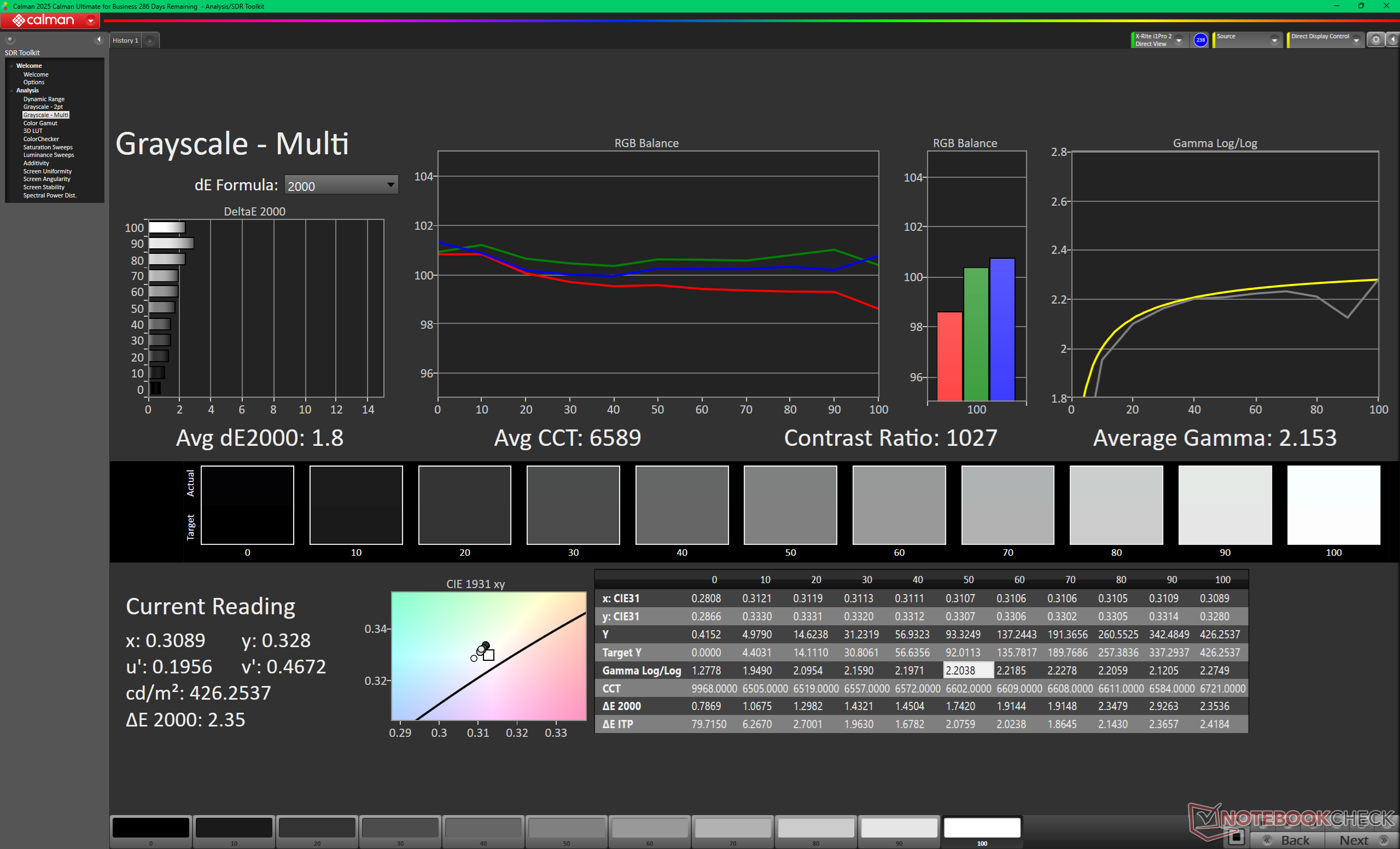 ΔE Greyscale Calman: 2.3 | ∀{0.09-98 Ø4.99}