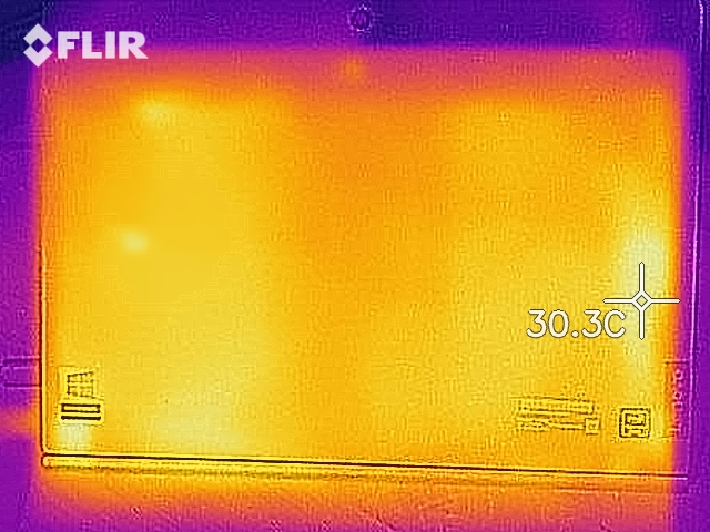 (+) In idle usage, the average temperature for the upper side is 27.8 °C / 82 F, compared to the device average of 30.3 °C / 87 F.