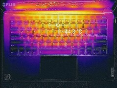 (±) The maximum temperature on the upper side is 43.8 °C / 111 F, compared to the average of 35.9 °C / 97 F, ranging from 21.4 to 59 °C for the class Subnotebook.