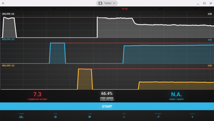 The MediaTek Kompanio 520's graphics card is the small ARM Mali-G52MP2 iGPU. Users have access to only two of its possible six cores and this iGPU is often used in older smartphone SoCs. Its performance (e.g. in GFXBench Aztec ruins Normal Offscreen) is comparable to the smartphone variants and has a similar speed to a UHD Graphics 600 inside the Celeron N4000 (e.g. Lenovo Chromebook S340). During the DMark Wild Life stress test, we didn't see any signs that the GPU was throttled. On the other hand, the Stress Test app revealed that the CPU was slightly throttled and under longer NPU load, it was throttled more severely.