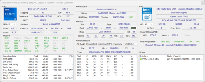 | Average Intel Core i7-13650HX (2505 - 2595, n=3) | |