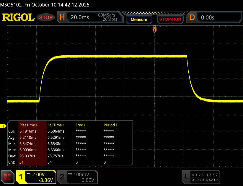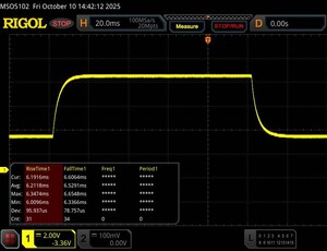 | 7.2 ms ... rise ↗ and fall ↘ combined | ↗ 3.3 ms rise | |