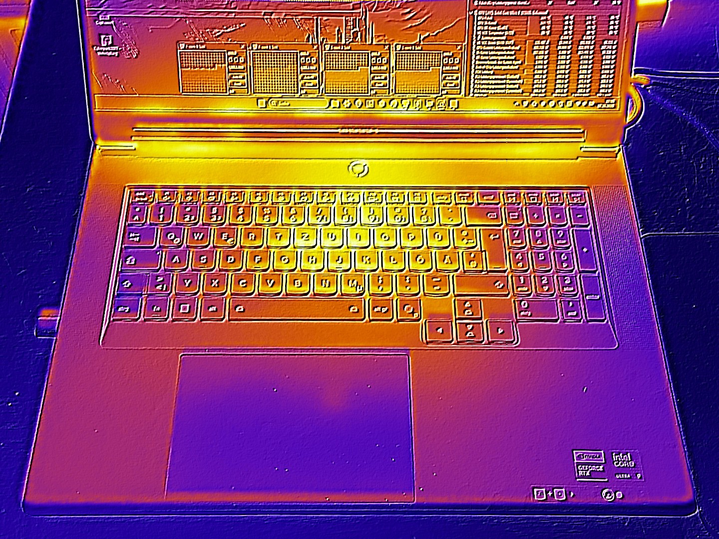 As with the RTX 5080 model, the temperature development is somewhat curious. While the Legion 9 18 already gets relatively warm in idle mode, the chassis surfaces barely heat up under load but sometimes reach similar values.