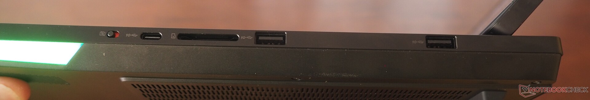 The number and variety of connections leaves nothing to be desired, especially since Lenovo has installed modern interfaces (see below). Interestingly, the card reader was slower than on the RTX 5080 version, while the wireless module delivered significantly better results. The 5 MP webcam, which offers an e-shutter, produces decent images.