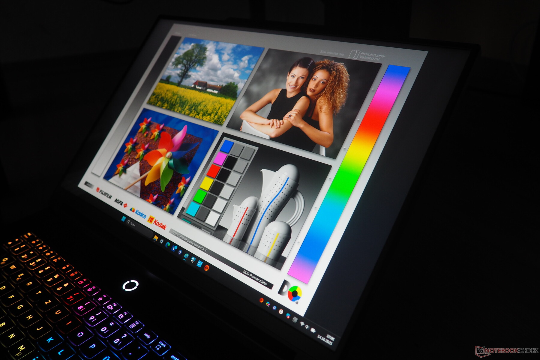 The advantage of the glossy version is bright colors, and this 240 Hz panel offers a large color gamut coverage. In addition to Display P3, Adobe RGB is nearly completely covered as well.